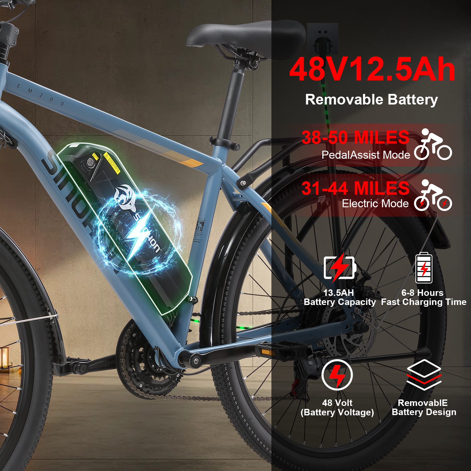 The EM200-HJ electric bike features a 500W brushless hub motor, delivering unmatched power for all terrains. In pure electric mode, it reaches a top speed of 20 mph (compliant with Class 3 e-bike regulations), effortlessly conquering steep inclines—including gradients up to 20%. Whether for daily commutes or off-road challenges, this motor ensures every ride is smooth and powerful.