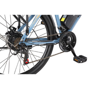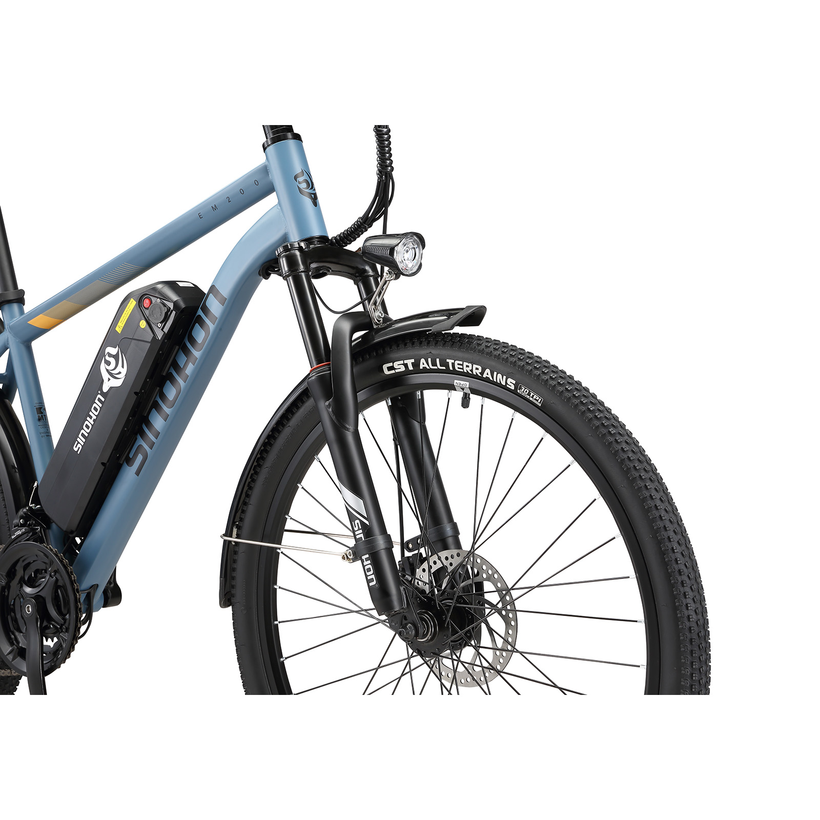 The EM200-HJ electric bike features all-weather comfort design: front dual fork suspension, rear gear shifting system, plush foam saddle, 26-inch × 1.95-inch tires and practical rear cargo rack. These components work together to deliver a smooth, cushioned ride, effectively absorbing impacts from rough surfaces for comfort on any terrain, while meeting daily cargo carrying needs.