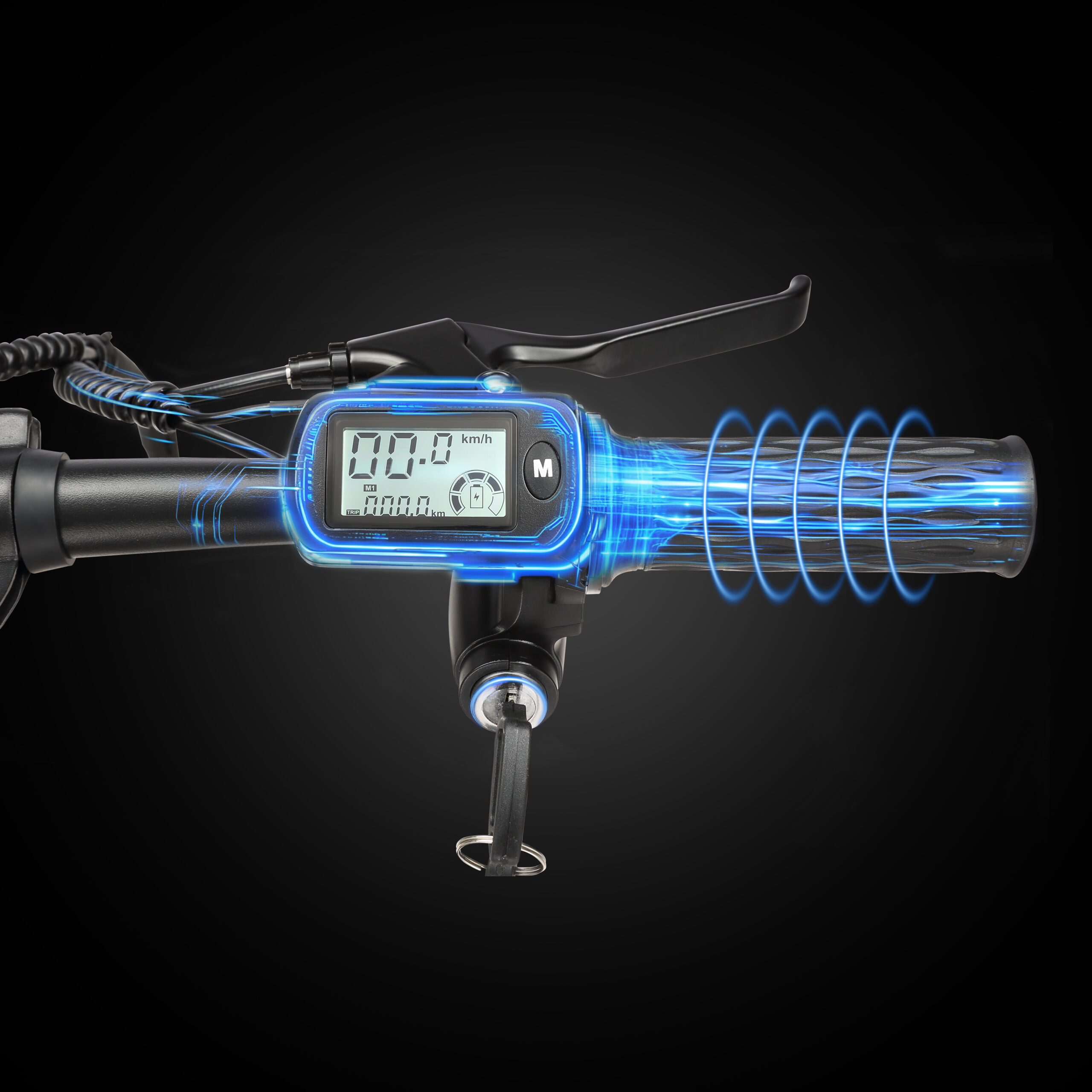 Built for convenience, the M3 features a practical steel folding frame and a flip-style seat post, allowing for easy storage and transport. This makes it perfect for combining with public transport or saving space at home and in the office. All essential information is clearly displayed on the easy-to-read LCD meter.